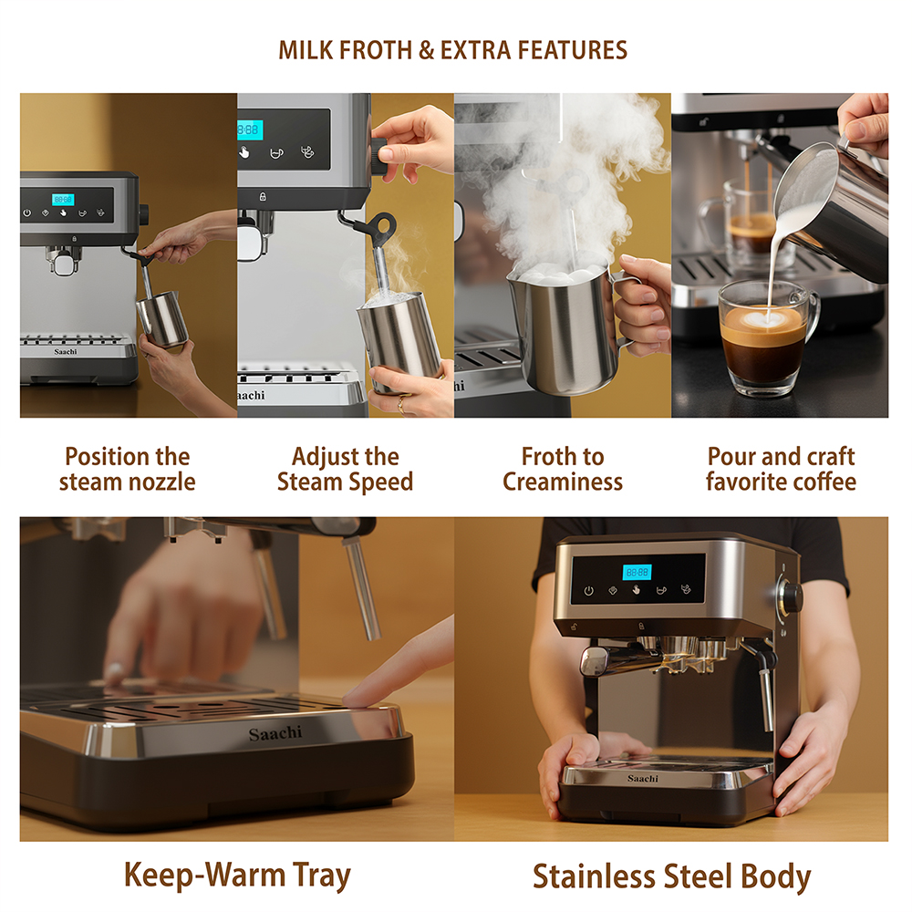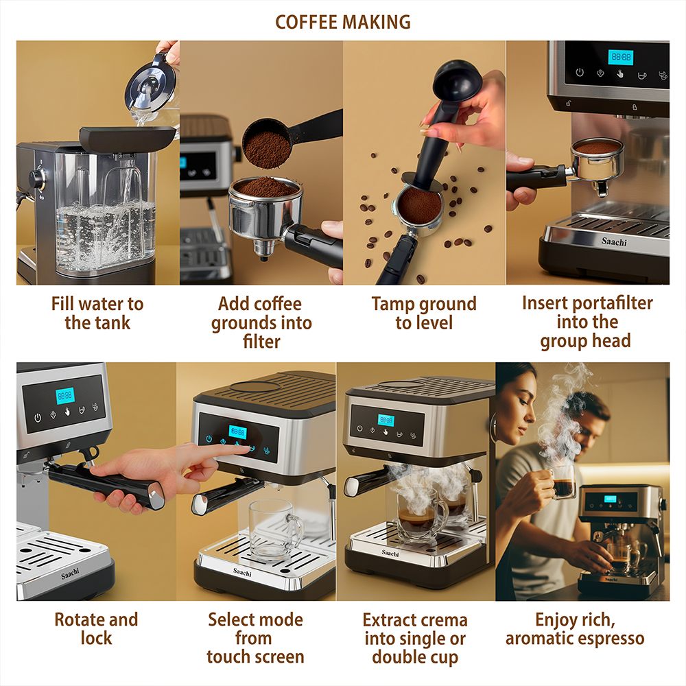 Brew barista-quality espresso at home with this sleek and intuitive coffee maker. Its modern design and user-friendly touch screen make preparing your favorite coffee drinks effortless. Whether you’re making a single cup or sharing with a friend, enjoy rich, flavorful espresso and creamy frothy milk with ease. Perfect for any coffee lover looking to elevate their brewing experience.