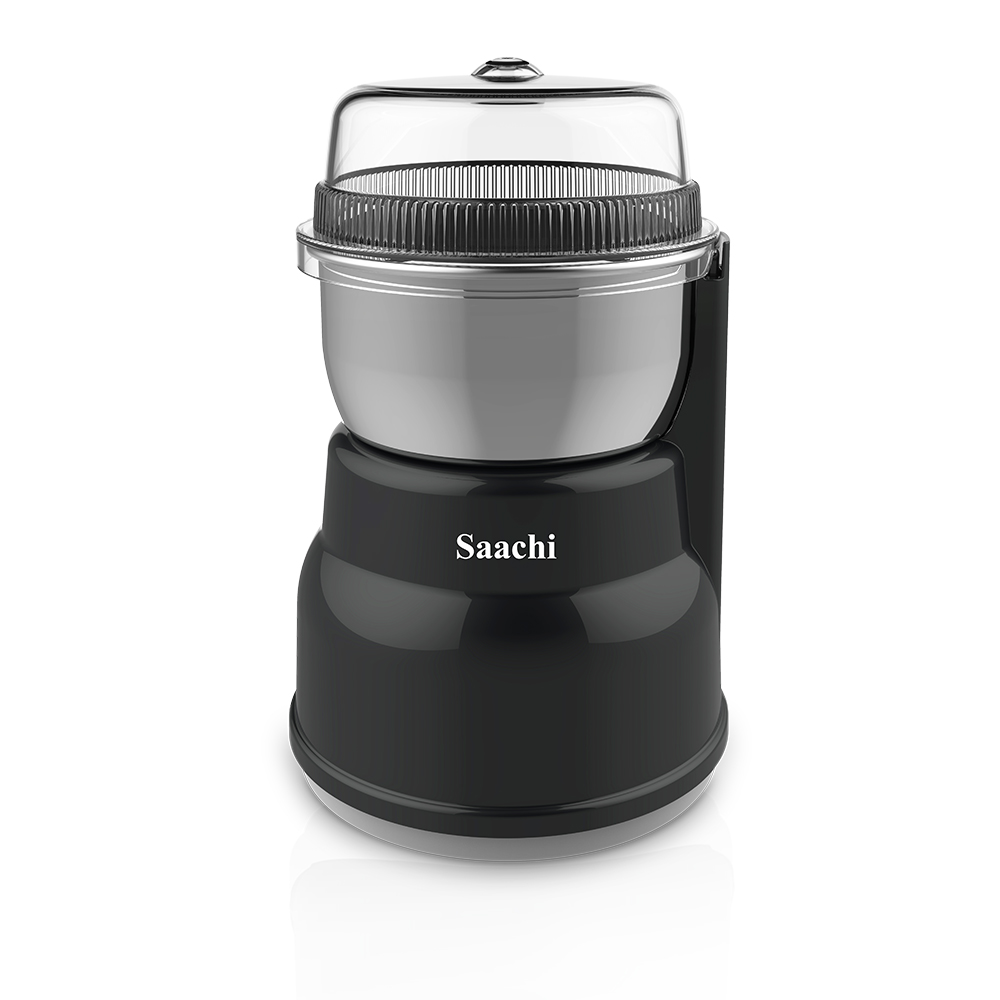 Nothing like a brewed coffee from freshly grounded coffee beans. Saachi Coffee Grinder is apt for coffee lovers. It can also be used to grind spices. Low grinding speed reduces static and heat buildup.