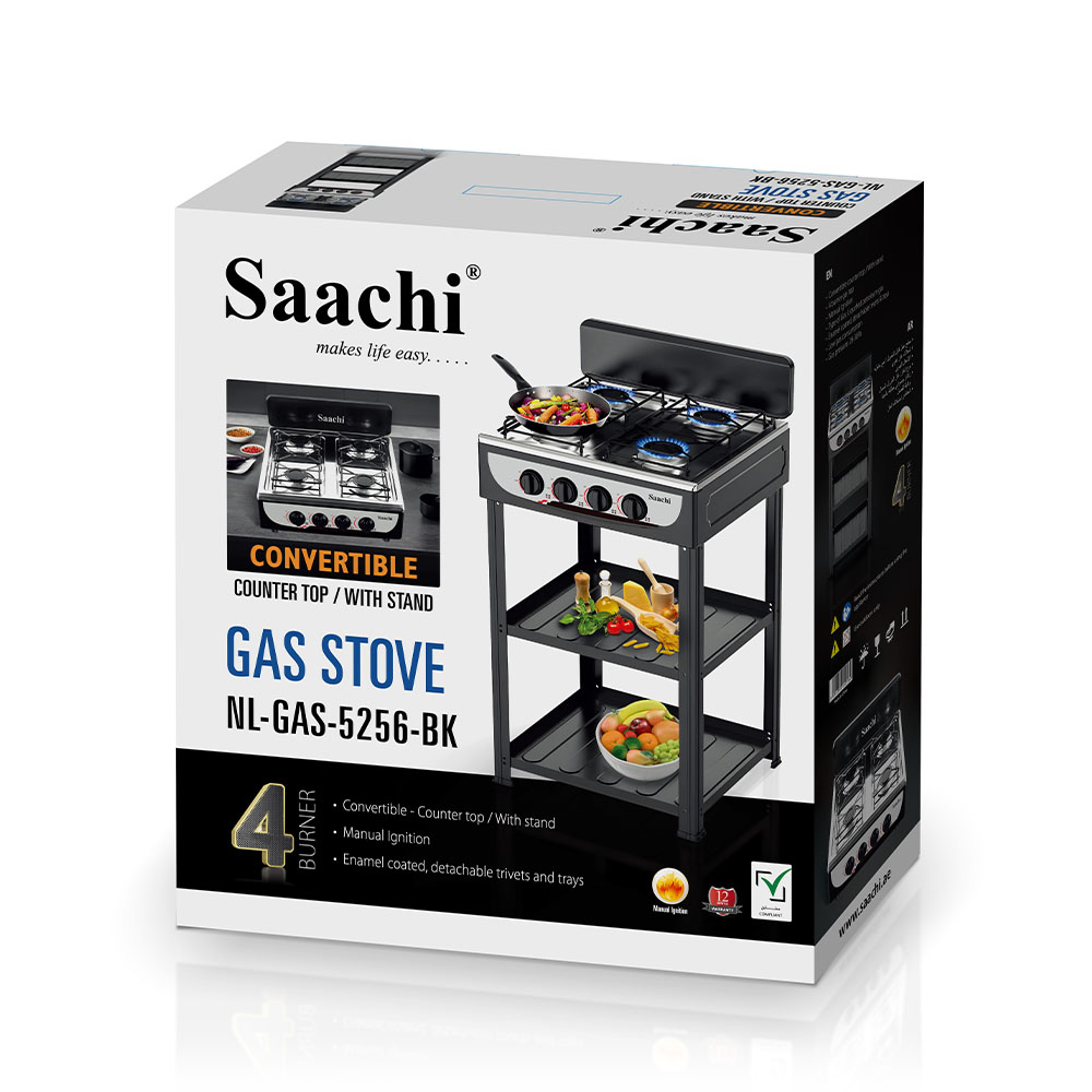 Saachi 4 Burner Gas Stove with Stand NL-GAS-5256-BK