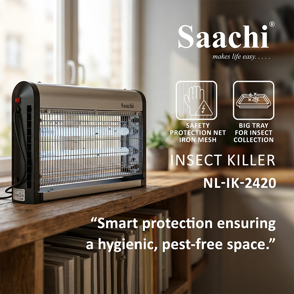 Damn those pesky insects, we hate them too! The Saachi Insect Killer is a must have appliance if you, like us, do not appreciate flies buzzing around you while you try to have a meal or simply take a nap. The insects are attracted to the UV light emitted by the appliance after which they are caught in the net, electrocuted and collected in the tray at the bottom of the appliance to be disposed off. This convenient product can either be placed on a table top or hung on the ceiling via the hooks on the top of the appliance.