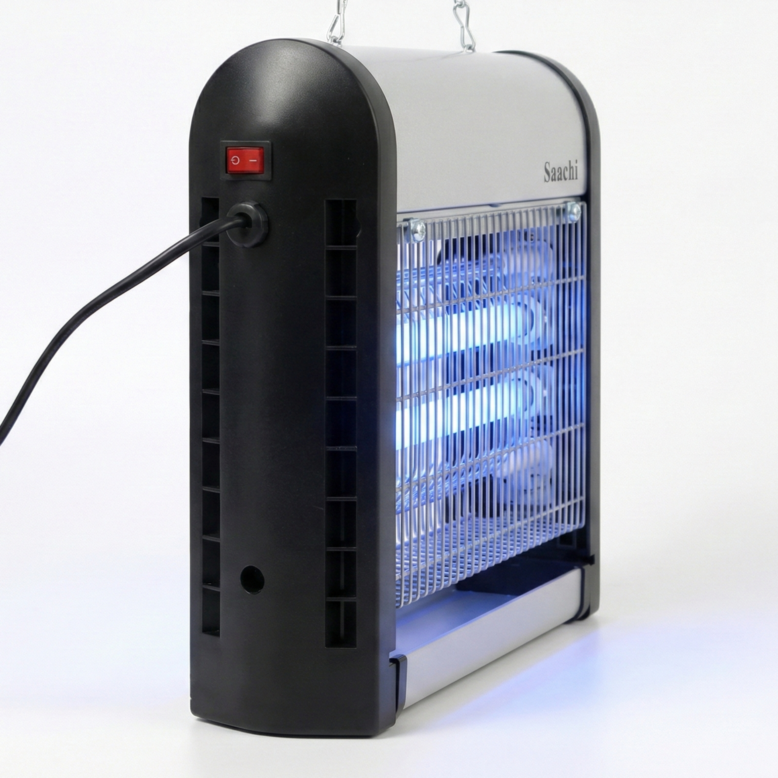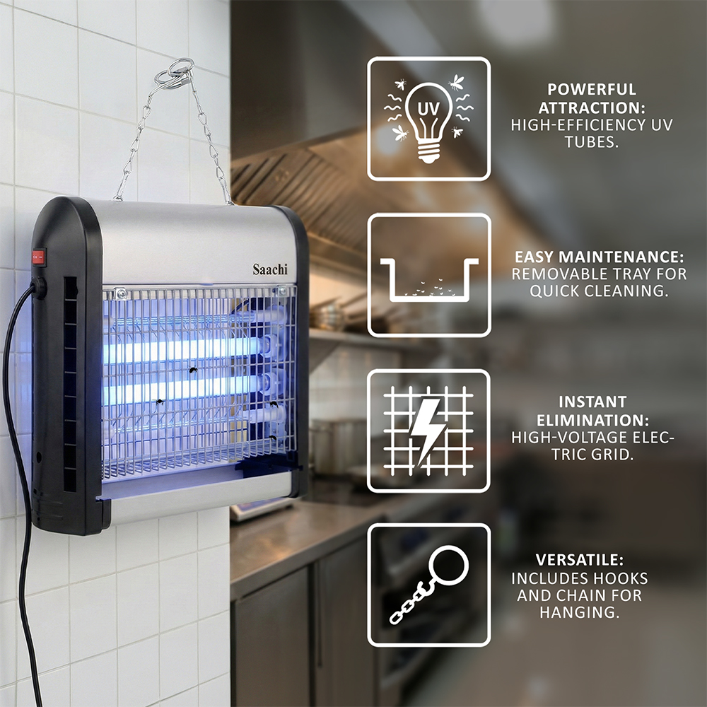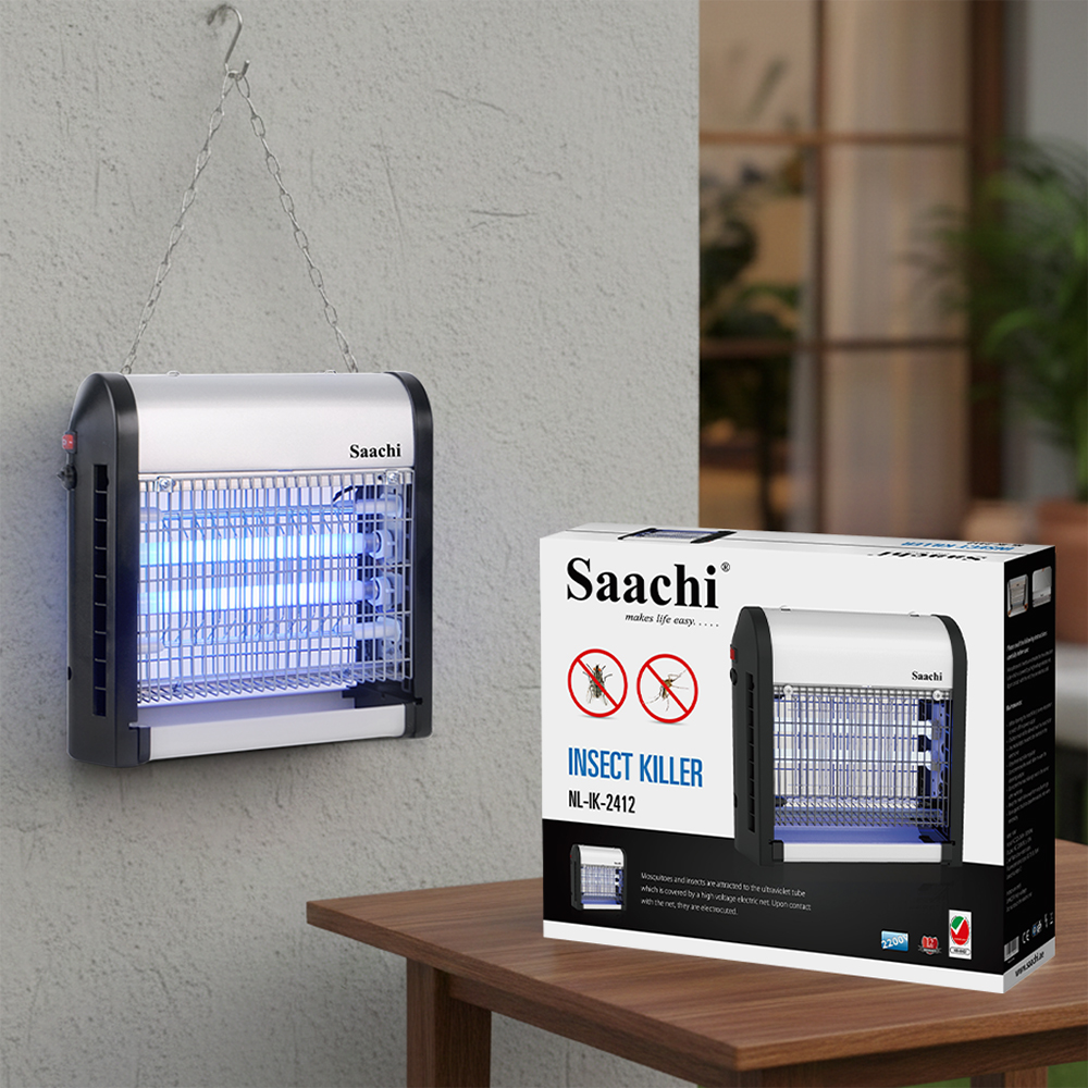 Damn those pesky insects, we hate them too! The Saachi Insect Killer is a must have appliance if you, like us, do not appreciate flies buzzing around you while you try to have a meal or simply take a nap. The insects are attracted to the UV light emitted by the appliance after which they are caught in the net, electrocuted and collected in the tray at the bottom of the appliance to be disposed off. This convenient product can either be placed on a table top or hung on the ceiling via the hooks on the top of the appliance.