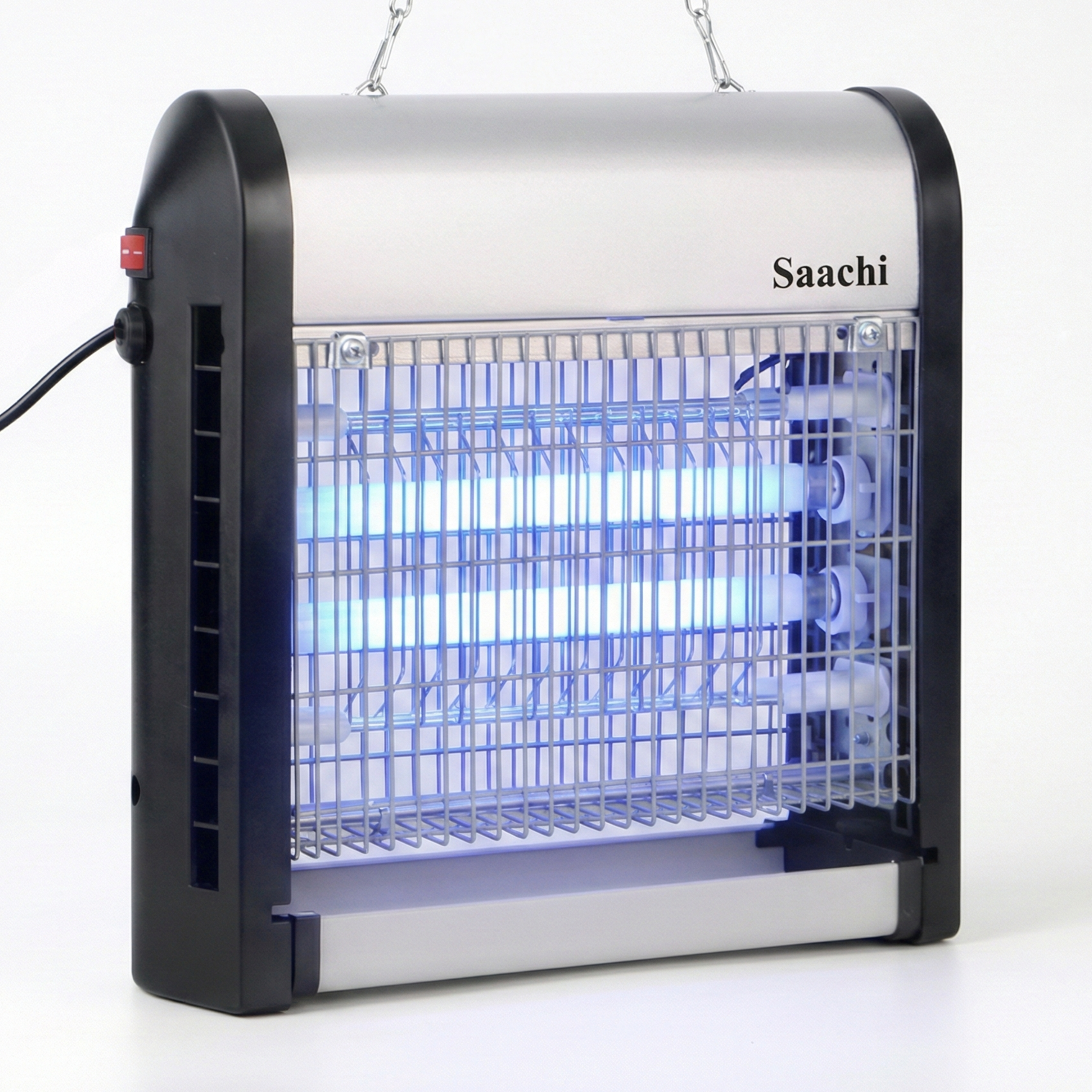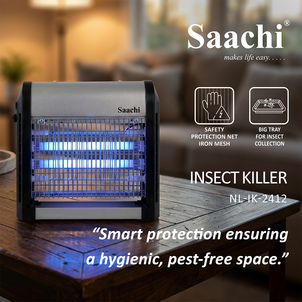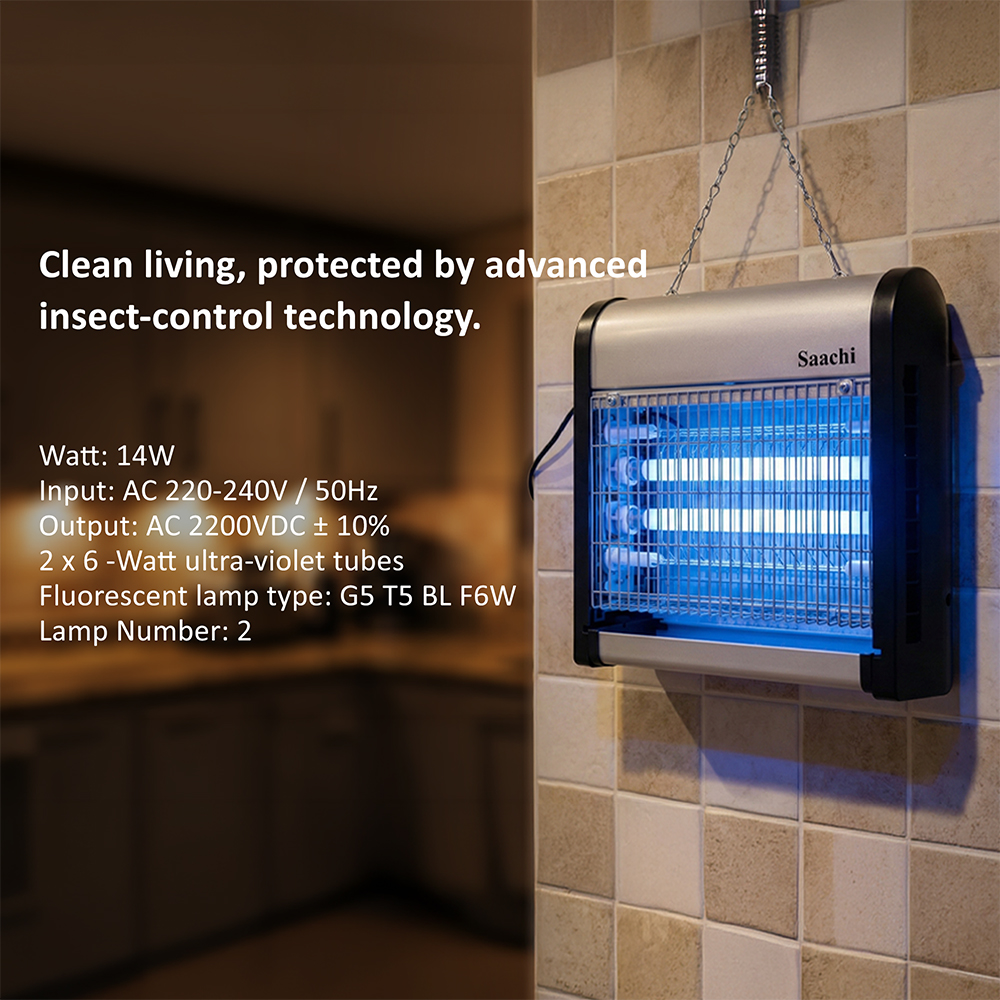 Damn those pesky insects, we hate them too! The Saachi Insect Killer is a must have appliance if you, like us, do not appreciate flies buzzing around you while you try to have a meal or simply take a nap. The insects are attracted to the UV light emitted by the appliance after which they are caught in the net, electrocuted and collected in the tray at the bottom of the appliance to be disposed off. This convenient product can either be placed on a table top or hung on the ceiling via the hooks on the top of the appliance.