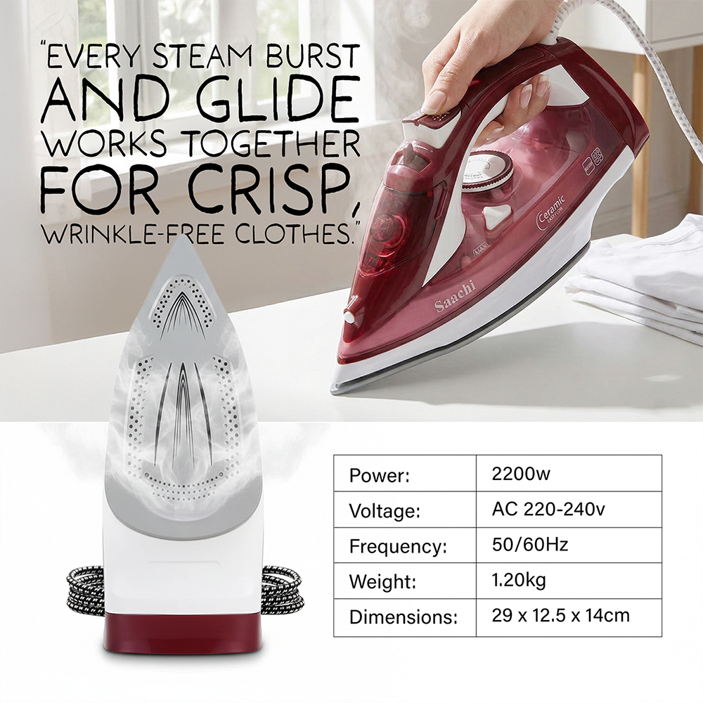 Saachi Steam Iron With Ceramic Soleplate NL-IR-393C-RD