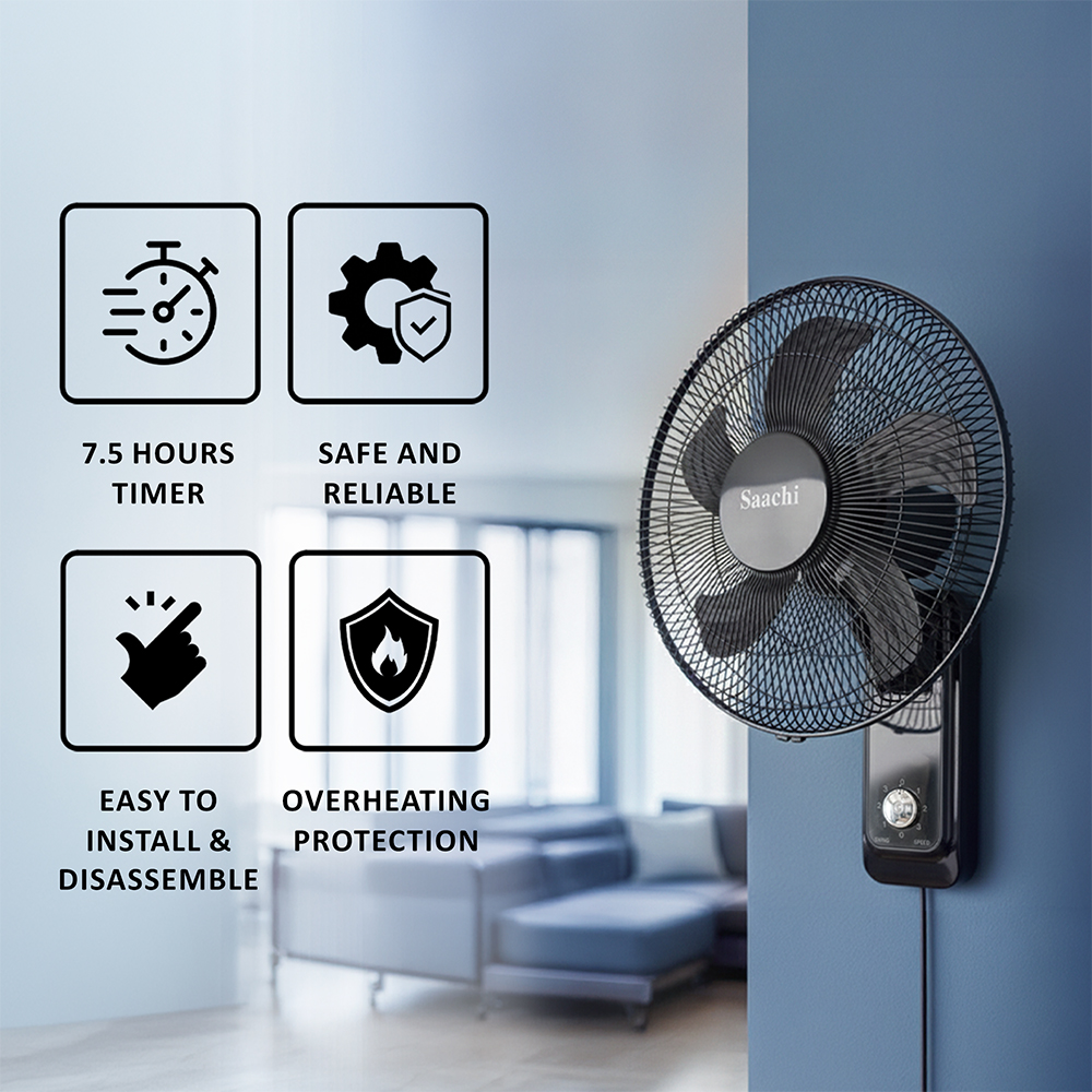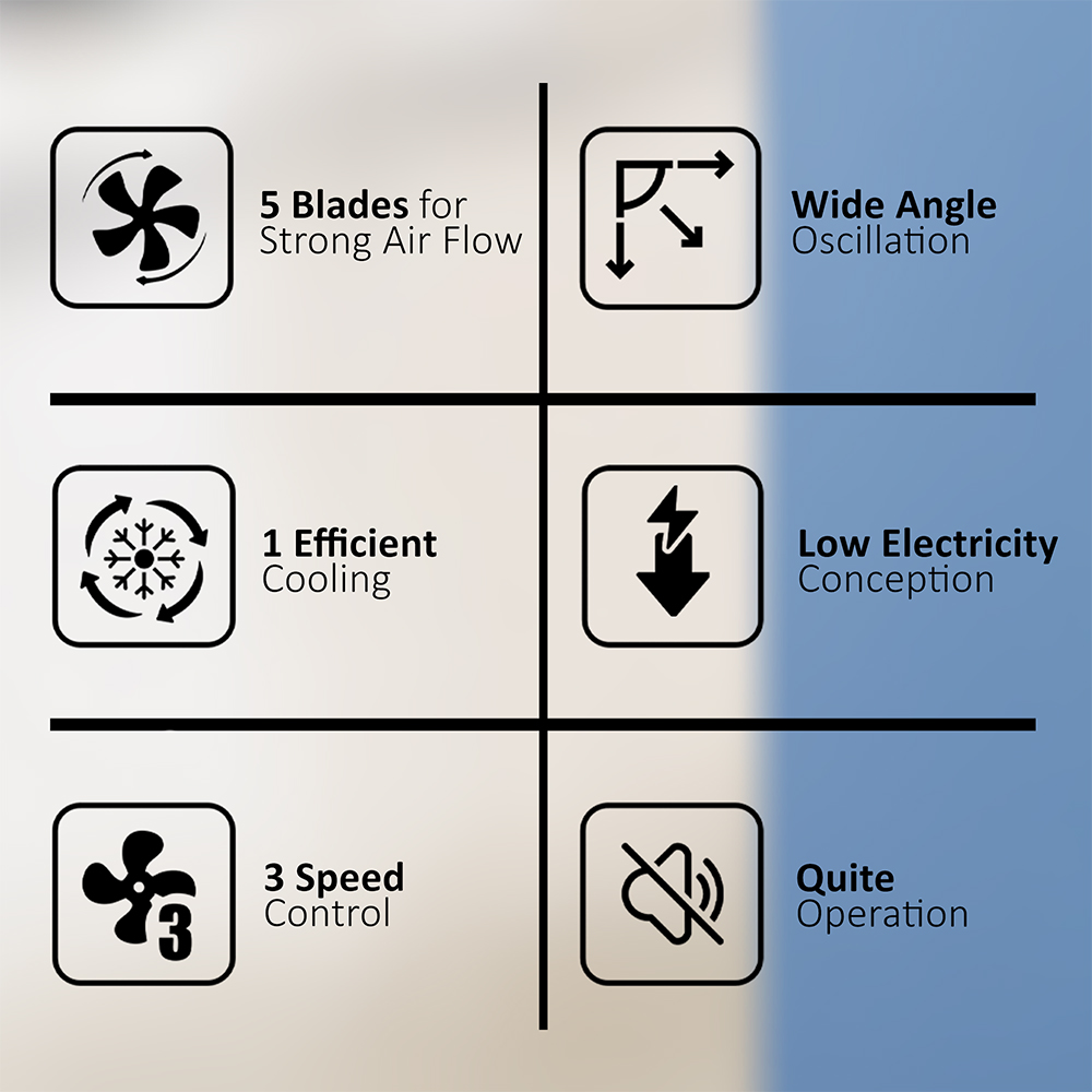 Keep your space cool and breezy with this 16-inch fan. It comes with a powerful motor, 3-speed control knob, and 5 sturdy plastic blades that deliver wide-angle oscillation for better air circulation. Designed for quiet operation and low energy use, it’s safe, reliable, and easy to install or take apart. Built-in motor protection prevents overheating for long-lasting performance.